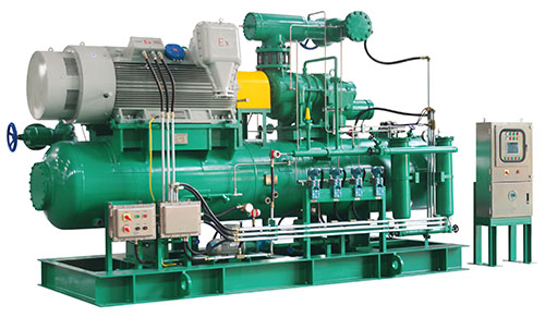 壓縮機(jī)組包含壓縮機(jī)、電機(jī)、控制中心、油分離器、油冷卻器、潤(rùn)滑系統(tǒng)等,所有部件的組裝均在工廠完成。