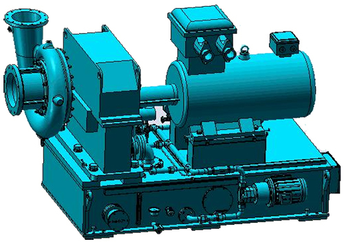 MVR離心蒸汽壓縮機(jī)采用整體組成撬結(jié)構(gòu)型式。本體主要由壓縮機(jī)(定子部件、轉(zhuǎn)動(dòng)部件、密封等組成)、齒輪增速箱、驅(qū)動(dòng)系統(tǒng)(變頻電機(jī)+聯(lián)軸器及其護(hù)罩)、潤(rùn)滑油路兼底座系統(tǒng)等組成。