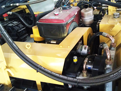 KG910C/YC910C型露天潛孔鉆車采用電動機和柴油機聯(lián)合驅(qū)動液壓泵為液壓系統(tǒng)提供動力。電動機和柴油機分開交錯使用,在無外接電源時使用柴油機,方便用戶進(jìn)行較長距離移動和轉(zhuǎn)場;在有電源情況下使用電動機,具有安全環(huán)保,低噪聲,使用成本低的特點。