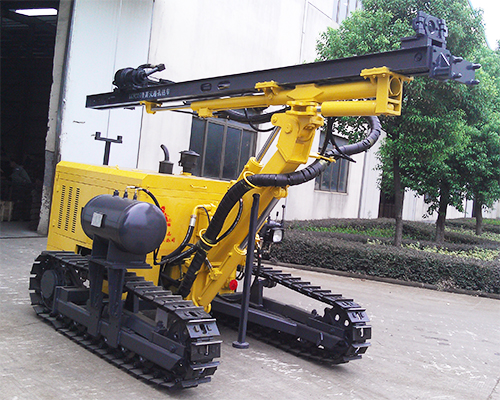 KG920B/YC920B 型露天潛孔鉆車在KY125型鉆車的基礎(chǔ)上,對液壓系統(tǒng)、鉆臂部件、行走部件等進行優(yōu)化升級,加大動力(YC4D80)爬坡能力更強,鉆孔角度更合理,回轉(zhuǎn)和推進速度更快,馬達使用壽命更長,可靠性更好。