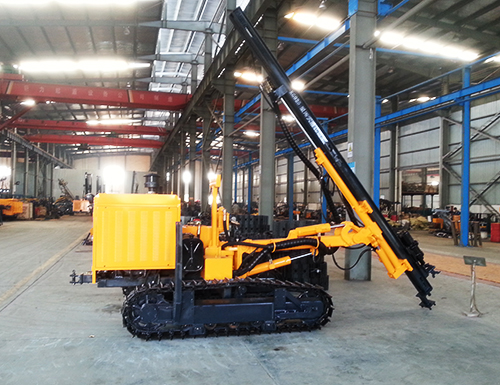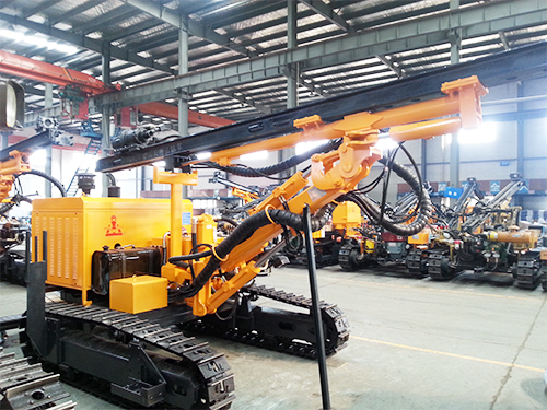 KG925/YC925 型露天潛孔鉆車以KG920B鉆車為基礎,對導軌、回轉(zhuǎn)器、履帶架、操作臺及整機布局等進行創(chuàng)新設計了,主要有以下特點: