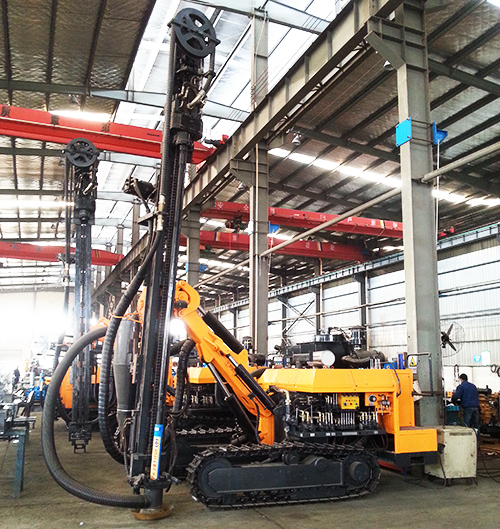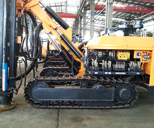 KG960型露天潛孔鉆車是我公司根據(jù)礦山要求和運(yùn)用成熟的液壓技術(shù)而精心設(shè)計(jì)的一款自行式液壓鑿巖設(shè)備。具有外形美觀、操作方便、性能穩(wěn)定的特點(diǎn)。通過優(yōu)化的液壓元件配置,可適用不同巖層的鉆鑿孔作業(yè)。大功率四缸康明斯發(fā)動(dòng)機(jī),可適用較高海拔的鉆孔作業(yè)。大扭矩回轉(zhuǎn)減速器提供強(qiáng)勁的回轉(zhuǎn)扭矩,可滿足較大及較深孔徑的鉆鑿作業(yè)。是露天采礦、道路修建、隧道開鑿等工程方面的理想鑿巖設(shè)備。KGH8型露天潛孔鉆車是在KG960型露天潛孔鉆車上加裝鑿巖集塵凈化器,凈化鑿巖作業(yè)環(huán)境,減少環(huán)境污染。
