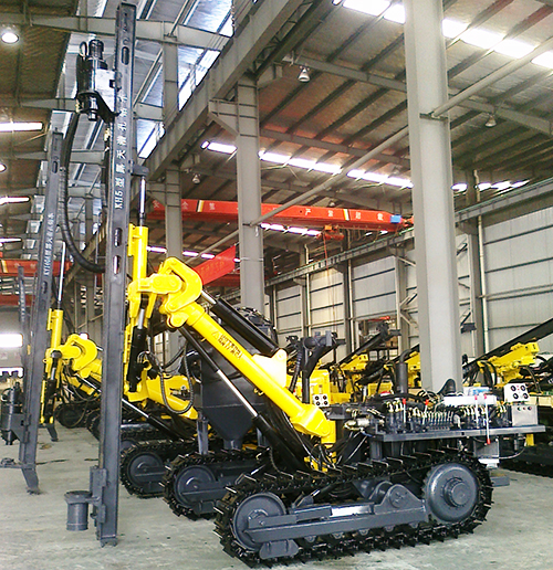 經(jīng)過優(yōu)化設計的變幅機構(gòu)及圓形鉆臂,結(jié)構(gòu)新穎,調(diào)整方便,使鉆孔覆蓋范圍大大提高,并可鉆鑿低位水平孔。