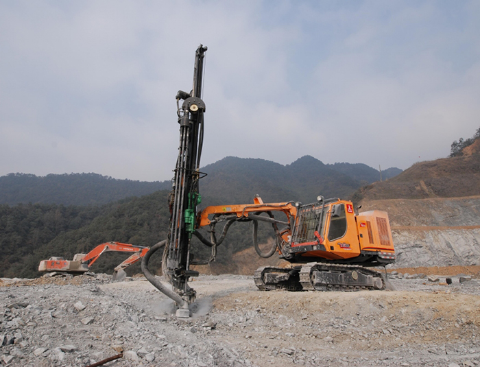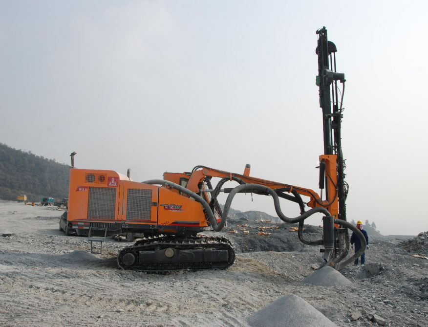 "開山"牌KL511型全液壓露天鉆車配備標準45/51毫米直徑釬桿,可鉆鑿76-127毫米的垂直、傾斜及水平炮孔。廣泛應用于路塹開挖,管道敷設和基礎工程以及露天礦山的鉆孔作業(yè)。