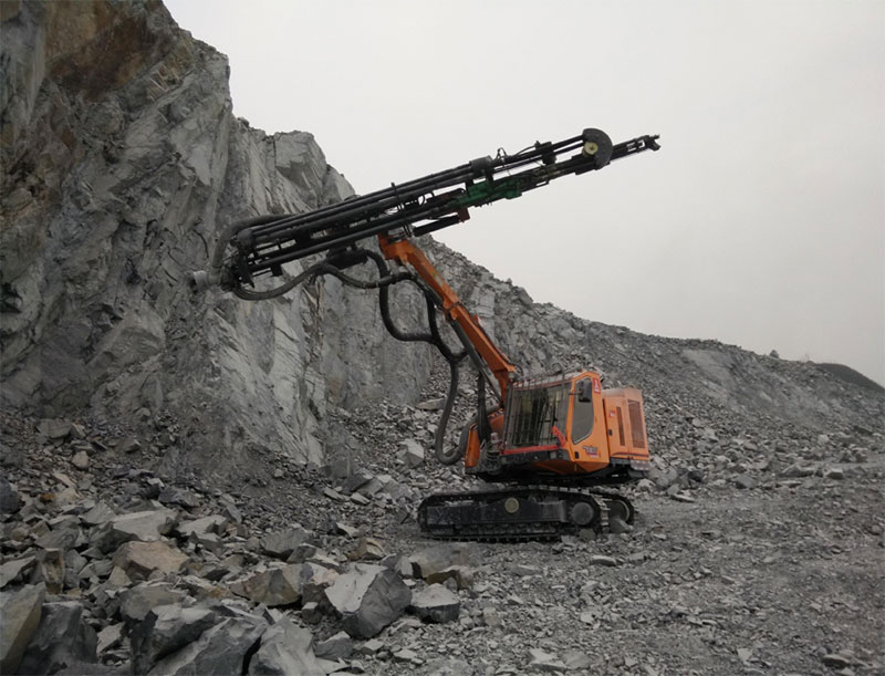 鉆車車架具備0-180°的回轉(zhuǎn)能力,使得鉆車一次定位鑿巖覆蓋范圍達26.5平方米,極大的提高了鉆車排布孔效率及應對復雜工況的能力。