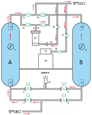 熱交換器、冷凝器選用優(yōu)質(zhì)、高效螺紋管,傳熱系數(shù)高,因而體枳小,結(jié)構(gòu)緊湊。簡(jiǎn)體材料可選用不銹鋼或碳鋼鍍鋅,避免對(duì)壓縮空氣的二次污染。